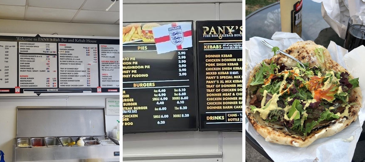 Pany's is a popular fish and chips takeaway in Sale, Manchester, offering a broad range of tasty takeaway options. This family-run establishment thrives on serving mouth-watering dishes, making it a go-to spot for locals and visitors alike. With a cozy atmosphere, Pany's specializes in classic British fare, including their famous fish and chips, doner kebabs, and delicious pies. The cheerful, friendly staff heighten the experience, ensuring a welcoming vibe that keeps customers returning. A solid value for money, Pany's offers a variety of meals all priced between £1 to £10, perfect for a quick lunch or a relaxed dinner. Plus, their late-night food service is a blessing for night owls in the area.